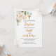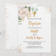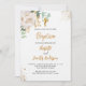 För dopet av 2 två barn. En vit bakgrund dekorerad med eukalyptusgrönska, en vit ros, och gyllene blad och falska guldglitterdroppar. Anpassa barnens namn och ceremonidetaljer. Svarta och gyllene bokstäver. Könsneutralt.