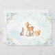 Themed dopinbjudan för nyckfull skogsmark i blått och guld som presenterar nyckfulla skogdjur: hjort, kaniner, ekorre och en nätt fågel