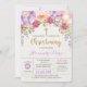 FlickaChristeninginbjudan som presenterar lilor/lavendelvattenfärg, blommar