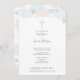 Gulligt och chic, pioner för denna är mjuka pastellfärgade blått med inbjudan för dop för gråttkorpojke perfekten långt som inviterar dina vänner, och familjen till din pys dop. Särdrag mjuka blått och benvita blommor, mjuka grönt- och gråttlöv och en mjuk grått korsar. All typografi är som kan ändras till passformen ditt party som planerar behov.