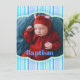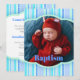 Blå och akvamarina pärlor och randiga mönstrade pojkar dop inbjudan. Personifiera med dina uppgifter och ett speciellt foto av din son.