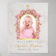 dopfotografi av en babyflickdopblommigneon guld folie bågerosa blommororkidéervälkomstskyltelegant kalligrafisk skriftvit marmor