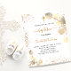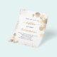 En modern och elegant dopinbjudan. En chic vit bakgrund dekorerad med gyllene eukalyptusblad. Anpassa och lägg till ditt foto av barnet, tackmeddelande och namn. Könsneutral.