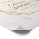 Denna eleganta blomsterdesign för dop rekommenderas för en flickas dop och har en geometrisk oregelbunden guldbård med blomsterbuketter av vita callaliljor och ormbunke upp och ner över två sexhörningar i guld som överlappar varandra, med ett guldkors högst upp. Bakgrunden är vit marmor. Barnets namn är skrivet med en elegant kalligrafisk stil; resten är skrivet med versaler. All text har en gyllengul färg, likt guldramen.