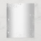 En falsk silverfärgad bakgrund dekorerad med eukalyptusgrönska, en roséguld och rosenskär ros, och gyllene blad och falska silvergnistor. Ett silverkors. Personifiera och barnets namn och dopdetaljer.