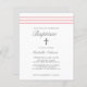 Med en chic rand med ränder i blekrosa och dina detaljer i elegant grå bokstavsstil, är denna enkla och klassiska dop- eller dopinvitation ett vackert val för en elegant eller formell firande av en babyflicka.