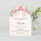 Fira din dotters speciella dag med denna eleganta och feminina dopinbjudan med en mjuk rosa rosett med ömtåliga pärldekor och vackra blomsteraccenter. Designad i en varm elfenbensfärg med en ren och tidlös layout skapar denna inbjudan ett förfinat och graciöst första intryck.