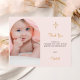 En modern och elegant dop tackkort. En chic rosenskär, roséguld bakgrund. Personifiera och lägg till ditt foto av barnet, tackkort och namn. Bågfoto ram