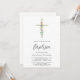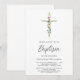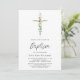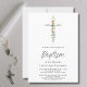 Denna stilrena dopinbjudan är dekorerad med ett vildblomskors och skrivstilstypografi.