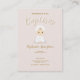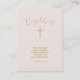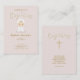 Denna härliga och söta bebis är perfekt för ditt barns dop. Designen består av en söt bebis som ha på sig en vitjumpsuit, vithaklappen med en guld- kor och en vithätta med en rosa pilbåge. Bakgrundsfärgen är en delikat rosa. Kontrollera ut den matcha tillbehören, gåvorna, party favors och brevpapperet.
