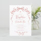 Elegant och feminin, denna dopinbjudan för flickor med rosabow har mjuka akvarellband som graciöst inramar designen med en subtil korsaccent ovanför. Den romantiska skrivstilstypografin i kombination med ren seriftext skapar en tidlös och elegant look som är perfekt för att fira din dotters speciella dag