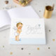 Dopgästbok för pojkar med söt liten ängel på en babyblå och vit bakgrund. Du kan enkelt anpassa denna babyblå dopgästbok för ditt evenemang genom att helt enkelt lägga till den text du väljer i den teckensnittsstil du föredrar. Du kan flytta och ta bort dopordet och det blå korset efter behov.