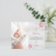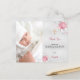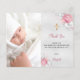 En modern och elegant dopkort tack. En falsk silverfärgad bakgrund dekorerad med rosa och vita blommor. Personifiera och lägg till ditt foto av den lilla flickan, tackmeddelande och namn.