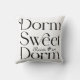 Den svarta och vita kudden "Dorm Sweet Dorm" har modern typografi och studentens rumsnummer.