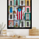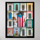 En färglös samling dörrar som finns i Gamla San Juan, Puerto Rico. Dörrarna i mitten är målade med flagga Puerto Rico