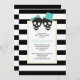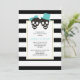 Inslag i den moderna lilan Halloween-parets duschinbjudan är ett roligt svart skallpar med akvabb och hatt parad med en elegant svart och vit strimlad mönster gräns. Er text är i ett vitt ram med guld kontur.