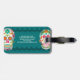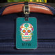Tillsätt en färgstark tryckning till resväskan med den här bagagetaggen som innehåller grafik med ljusa färgader av döskallar. Märkrns framsida är redot att vara personlig med initialer, medan den motsatta sidan är redot att vara personlig med fullt och kontaktuppgifter.