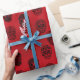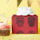Sockerhaltiga döskallar, vissa med Jultomten hattar, på djup röd inslagning papprare. Har en goth vibe. Unik papprare förpackning för dina unika gåvor! Från Skarribabydesign.