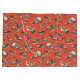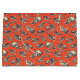 Den här presentsäcken har handillustrerade dinosauriska döskallar i marinblått och kräm på en ljus bakgrund med röd orange.