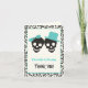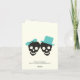 Eleganta döskallar Halloween turkos bröllopsinbjudan med ett svart döskallepar brud och brudgum på elfenbensvit bakgrund och en döskalle mönstrad kant. Brudgummen bär en turkosblå hatt och bruden en turkosblå rosett.