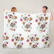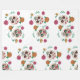 Den här färgfulla filten har Dia de los Muertos eller Day eller Dead-temat. Två sockerhaltiga döskallar accentueras med blommor i rosa och orange, och blommigt grönt. Bilden visas tvärs över filten.
