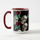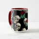 Vit som grinar döskallar, och röd ros med gröna löv mot en svart bakgrund gör detta en en klockas slag och en unik design.