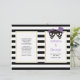 Skullparet med en lila bugar den brud och lila som brudgummen och det svarta och vita rand moderna Halloween-utspelade bröllop-ceremonin och party-programmet. Det finns vitt ramar med guld-kontur med texten.