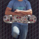Gör ett djärvt påstående med denna unika skateboard som har en öga-fångstutformning av döskallar, ro och rosa disco bollar. Perfekt för skater som kärlek att stå ut med, den här packan kombinerar edgy och dynamiskt inslag för ett utseende som är både starkt och roligt. Ride i stil och vrid huvudena i skateparken med biet!