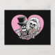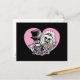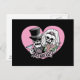 Döskallar i Bride och Groom klädda i bröllop finaste, på ett rosa hjärta med NY GIFTA!