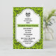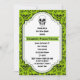 Döskallar grönt, svart mönster och banner Halloween bröllop inbjudningskort för möhippan. Den här eleganten är utformad med en blommigt och skalle mönster, en ram i mitten, en svart skalle och en lime grön banderoll. En contemporary som ändå är klassad med ett vintage stil-teckensnitt. Elegant skokisk utformning, perfekt för Gothic- eller Halloween höst- eller vinterbröllop. Det är en fullständig mall för anpassade och ingår i en uppsättning bröllop.