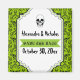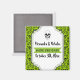 Döskallar fuskar grönt, svart mönster & banner Halloween bröllop spara datum magnet. Den här eleganten är utformad med en blommigt och skalle mönster, en ram i mitten, en svart skalle och en lime grön banderoll. En contemporary som ändå är klassad med ett vintage stil-teckensnitt. Elegant skokisk utformning, perfekt för Gothic- eller Halloween höst- eller vinterbröllop. Det är en fullständig mall för anpassade och ingår i en uppsättning bröllop.