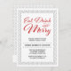 Inbjudan till julfest innehåller ett gräns med punkter och ord "Eat, Drink och Merry" i rött skript. Kortet innehåller en matchande baksida. Ta en titt på andra helgdagskort i min butik här http://www.zazzle.com/collections/holiday_christmas_new_year_cards-119015800351034065?rf=238364477188679314 Anpassa den genom att ersätta platshållartexten för att lägga till information. Om du vill ha fler alternativ klickar du på knappen "Anpassa". *Observera att Zazzle Watermark som visas i zoomförhandsvisningen INTE visas på den färdiga tryckta produkten. © Rosewood and Citrus