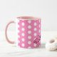 Rosa bakgrundsvita prickar - dam Ringer Combo Mugg, personlig-gåva till flickor och dam i alla åldrar.