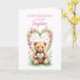 Skicka födelsedagspresent önskemål till din dotter på hennes femte födelsedag på bästa möjliga sätt med det här vackra kortet. En nalle framför ett gäng färgstarka blommor, presenter ett hjärta som visar 5 års ålder. Gör deras födelsedag oförglömlig med det här charmingskortet. Ett femte födelsedagskort för en dotter.