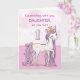 En söt rosa ponny precis som din dotter galopperar runt med nummer ett! Detaljer med guldutseende är invävda i hennes man och svans. Perfekt kort för att önska din dotter en lycklig 1-årsdag! (Digitalt renderad guldliknande färg)