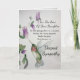 Visa er djupaste sympati för förlusten av en dotter med ett vattenfärgskort för hummerande fåglar och ett bibelcitat från Ecclesiastes 3:1 "Till allt finns det en säsong, en tid för allt under himlen." Elegant och lugn, trädgårdsdesignen skapades med pastellpräglat färger av grädde, grönt och rosa. Skicka dina välsignelser och böner i en tid av förlust med en vacker liten fågel och blommor.
