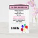 Grattis på födelsedagen DAUGHTER är skrivet i svart och rosa typografi. Ange NAMN 14:e födelsedagen eller någon ålder (ta bort om du vill lämna tomt om du vill vända dig till MAMMA, MOSTER, GRANDMOTHER). Anpassa till vår dotter, till vår mordotter, till min kusin osv. Du är så Speciell med ett rött hjärta och ballonger... -...lämnat inne har ordalydelsen. Rosa och svart ramområde med speciellt meddelande mot bakgrund av grönt. Färgfulla muffinsar på sidan. Lämna ett meddelande eller anpassa det med ditt eget. Infoga datum i grund mellan röda, blå, grönt och gult stjärnor. Originalteckning och Design © TamiraZDesigns.