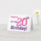 Dotter fyller 20 år hälsning i lila, rosa. kort