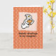 Önska en förevändning Halloween till din dotter med detta söta, dyrbara kort. Det har en bild av ett leende spöke som håller en pumpkin på en orange och vit prickad bakgrund. Skicka det här med spooky-meddelanden och låt henne njuta av Halloween.