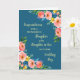 Grattisar på ditt bröllopsdag kort för dotter och dotter i juridik med vackra vår-vattenblommor mönster och sentimentala versum.