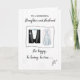 Det här är det vackra kortet du behöver för att skicka dina grattisar till din dotter och hennes Make på deras Bröllop. En underbar illustration av en möhippa och en tuxedo i bakgrunden med mjukt rand. Perfekt att skicka ditt bästa önskemål.