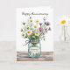 Ett muntert årsjubileum för din dotter och svärson med en vattenfärgad stil bukett av daisy och vilda blommor i en blå mason-burk som är bunden med rostergarn. Den mjuka pråmen färg och avslappnad framkallar en fredlig inställning i land, perfekt för att fira kärlek i blomning. Ett varmt budskap inuti hedrar deras resa tillsammans. Från Sandra Ro är design två.