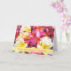 Ett pappert hälsningskort för en dotter på Ljus och färg. Kortet har en digital målning av Plumeria/Frangipani-blommor. Tropiska blommor i nyanser av magenta, rosa, gult, vitt och orange. Art, bild och versell copyright © Shoaff Ballanger Studios.