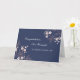 Grattis till vår dotter och son i lag på deras bröllopsdagkort. Elegant och contemporary med det blom- vintagemönster för klassiker i persikakorallrosor, mörkt marinblått och vit, perfekten långt som berättar dem hur mycket stolt du är på denna speciella dag.