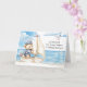 Det här söta "lycka till"-kortet till en sonson har en förtjusande akvarellbjörn utklädd till sjöman som skickar glada uppmuntran från havet. Framsidan lyder ”Sonson – Full fart framåt mot att må bättre!” – ett lekfullt, nautiskt budskap perfekt för att pigga upp. Mjuka blå toner, ankare och segelbåtsaccent samt teddybjörnens milda uttryck skapar en tröstande och barnvänlig stämning. Det interna meddelandet ger kärlek och stöd medan din sonson återhämtar sig, med en positiv ton som känns som en varm kram. Ett bra val för unga pojkar som älskar båtar eller behöver ett leende medan de läker.