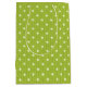 Förvandla din presentupplevelse ge med en Docka Delight Grönt Medium Gift Bag. Den här snyggten Medium Gift Bag har en charmerande vit polka-punktdesign på en ljus grönt-bakgrund för ett mysigt utseende från Faux-sticka.