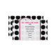 En visitkort som presenterar en svart polka, pricker bakgrund över vit med rosaklippning. Rosa och svart text över ren vit. Personifiera med din information. Motsatssidosärdrag som matchar polka, pricker bakgrund. Logotypen av den rosa Schoolhouseinsidan cirklar den formade rosaramen.