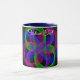 Modern 3D circular inspired geometric coffee mug with navy blue color handle. Unique features include a colorful mesh styled center design, additional mug color options and text customization.