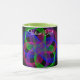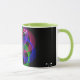 Modern 3D circular inspired geometric coffee mug with light green handle. Unique features include a colorful double loop mesh styled center design, additional mug color options and text customization.