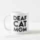 Den svarta texten "Döv Cat Mamma" är staplad i tre linjer text i versaler. "o" i "Mamma" har ett vitt tass inuti.
